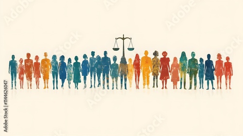 Flat vector poster design highlighting equality with symbolic scales and diverse figures for Zero Discrimination Day