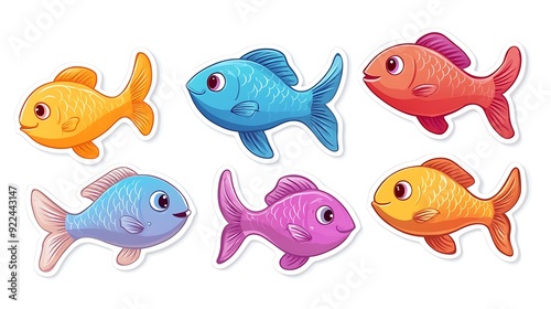 Fleet of Swimming Fish in Perspective on White Background - Sticker Design Concept