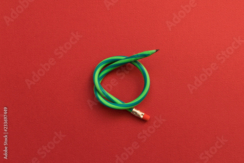 Flexible pencil . Isolated red background