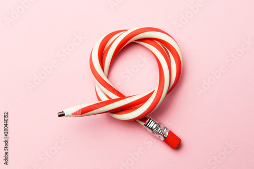 Flexible pencil on a pink background. Bent pencils two-color