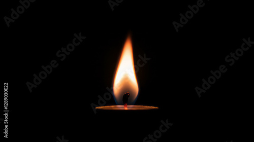 Flickering candle flame against dark background for tranquil meditation and relaxation