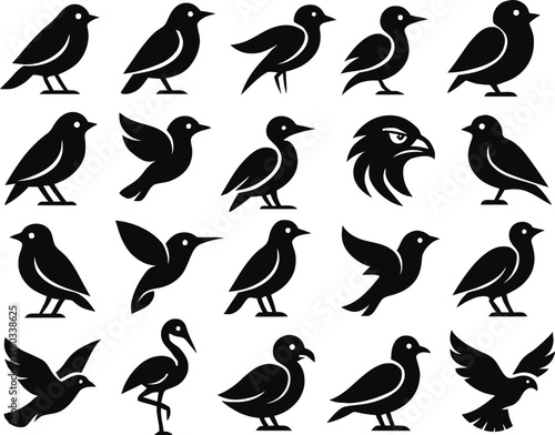 Flight of Elegance,, A Collection of Unique and Smooth Avian Icons Representing Nature's Beauty.