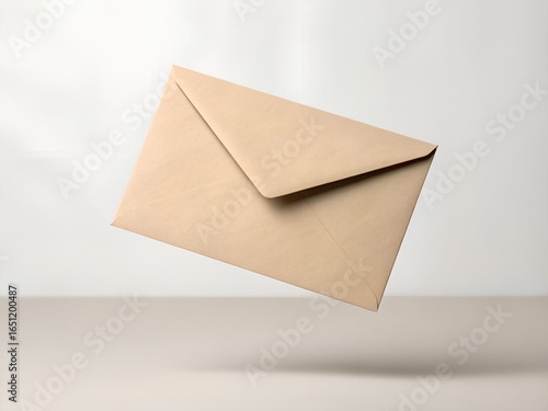 envelope, mail, letter, post, correspondence, message, communication, paper, craft, texture, beige, brown, off-white, background, floating, minimal, simple, clean, studio shot, neutral, pale, vintage, retro, classic, design, element, graphic, illustration, object, item, stationary, delivery, sending, receiving, news, information, announcement, greeting, invitation, card, note, postal, service, contact, connection, airborne, levitation, suspension, light