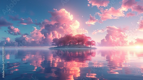 sky, cloud, island, water, landscape, beauty, adventure, magical, travel, pink, floating, nature, serene, scenic, horizon, fantasy, peaceful, dreamy, surreal, vibrant, calm, blue, sunset, calmness, aethereal, atmosphere, sunlight, mirror, illusion, wonder, soft, mist, pastel, surrealism, imagination, escape, picturesque, harmony, mystic, airy, whimsical, wonderland, heaven, daydream, paradise, breathtaking
