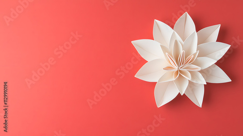 Floating origami lotus on tranquil red backdrop creates serene atmosphere