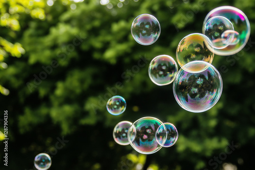 bubble, soap, floating, iridescent, light, colourful, nature, green, whimsical, transparent, delicate, air, fun, childhood, play, shiny, dreamy, soft, fantasy, relaxation, abstract, motion, background, fresh, magical, summer, peaceful, joy