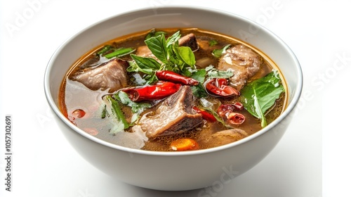 Floating Tom Saap, spicy and sour Isaan soup with pork ribs,