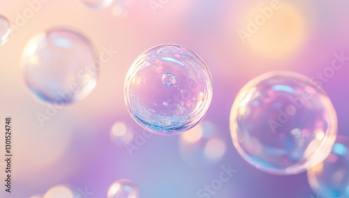 Floating transparent bubbles on pastel background.