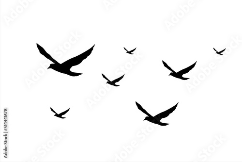sky, flying, bird, bird, flock, fly, nature, blue, flight, white, animal, group, black, silhouette, wing, vector, illustration, seagull, wildlife, seagull, animal, cloud