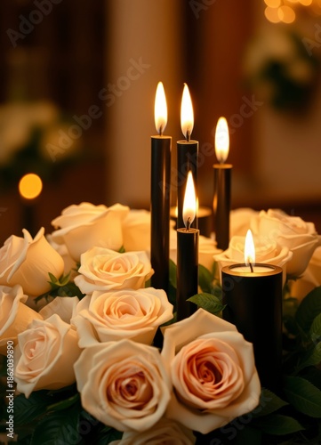 white rose, floral arrangement, candle, light, candle, candlelight, celebration, romantic, romance, flower, black, rose, decoration, love, pink