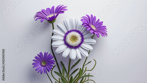 gerbera daisy, purple, white, flower, floral, arrangement, nature, bloom, blossom, spring, summer, botanical, flower petals, floral pattern, floral pattern, isolated, studio shot, bright, vibrant, colourful, clean, simple, minimalist, elegance, beauty, decorative, art, design, creative