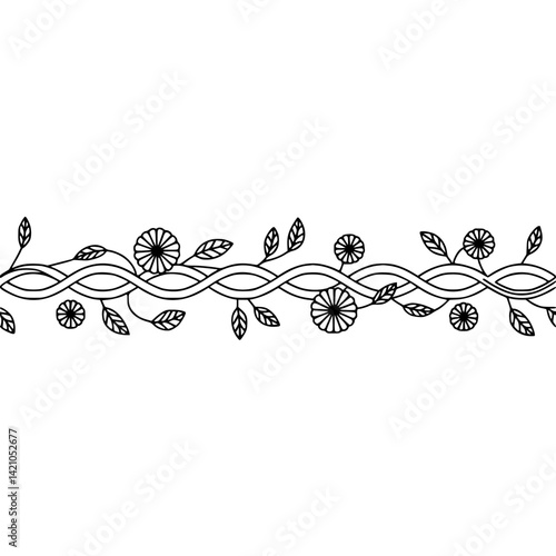 vector, floral, border, line art, black-and-white, flower, leaf, vine, decorative, elegant, design element, pattern, seamless, ornament, nature, botanical, wedding, invitation, greeting card, website, blog, header, minimalist, simple, flourish, illustration