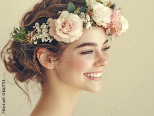 woman, flower, crown, floral, headband, garden, springtime, wedding, happiness, positive, emotion