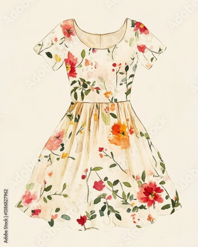 dress, floral, flower, blossom, watercolor, garment, clothing, fashion, summer, spring, design, pattern, textile, style, elegant, vintage, romantic, feminine, cute, decorative, illustration, drawing, artwork, art, artistic, beauty, beautiful, background, print, texture, fabric, apparel, clothes rack, wear