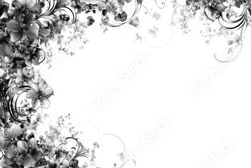 floral, frame, black, white, swirl, delicate, elegant, minimalist, design, blossom, intricate, border, background, pattern, art, flower, leaf, vintage, romantic, classic, abstract, graphic, illustration, nature, beauty, symmetry, contrast, monochrome, simple, stylish, sophisticated, decorative, wedding, invitation, greeting, card, flower, ornament, vector