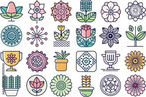 flower, flower, floral, plant, plant, icon, design, element, vector, illustration, graphic, pattern, nature, spring, summer, blossom, bloom, botany, decoration, ornament, art, style, retro, vintage, cute, colourful, mandala, set, collection, background, template, image, wallpaper, textile, print, sticker, symbol, emblem, badge, logotype