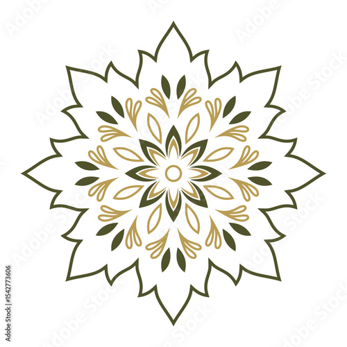 mandala, pattern, decorate, circular, repeating, stylised, geometric, calming, earthy, natural, soft, elegant, serene, meditative, decorative, nature, shape, leaf, flower, green, gold, white, background, illustration, design, graphic, wallpaper, art, decoration, element, print, textile, artwork