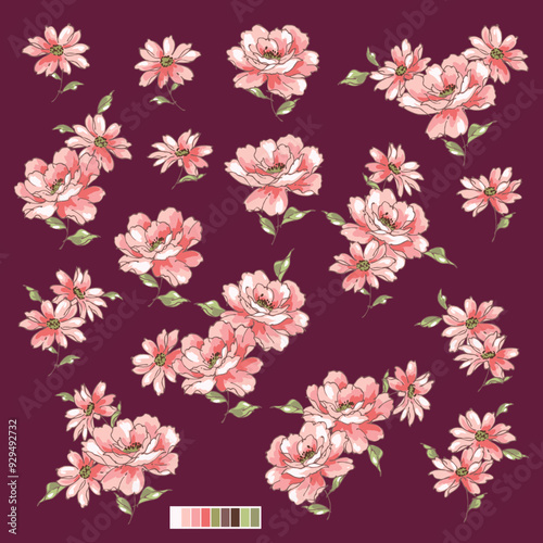 Floral material collection ideal for textile design,