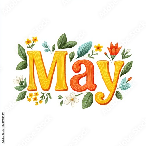 Floral may artwork with colorful flowers and leaves in vibrant design