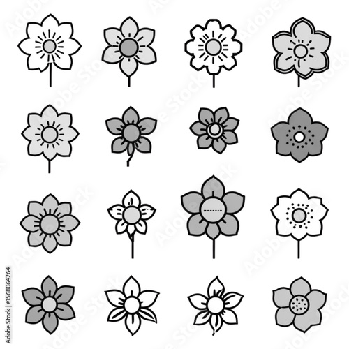 flower, icon, monochrome, symbol, design, vector, illustration, set