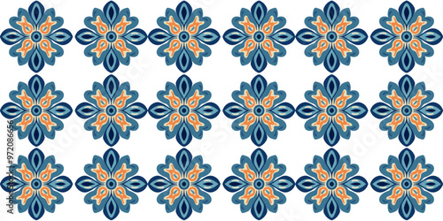 Floral ornament hand drawn seamless blue geometric tile pattern surface design, tiles,