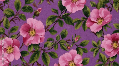 floral, pattern, rose, pink, purple, leaf, branch, bud, vintage, design, print, texture, background, flower, botanical, illustration, decorative, pretty, nature, beauty, spring, summer, garden, blooming, detail, vibrant, colours, high-coloured, seamless, repeat, graphic, art, decoration, fabric, textile, wallpaper, patterned, background, sweet