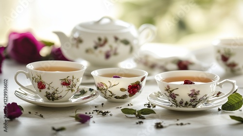 Floral Teacups and Teapot: A Serene Afternoon Tea Setting