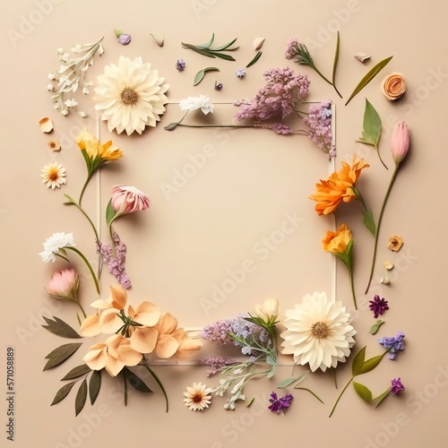 Floral template, empty space in the center of the template. Flowers card, border