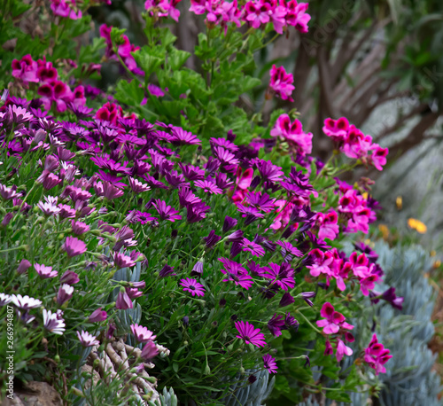 Flores de colores. Arbusto verde con flores de colores. Hermoso fondo natural. Naturaleza. Floral.