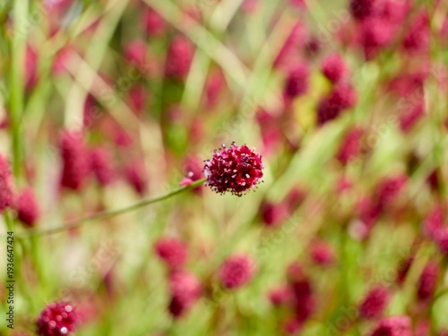Flowering of the great burnet (Sanguisorba officinalis), also known as burnet, garden burnet and official burnet. Sweden