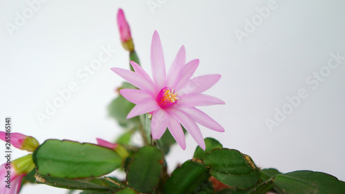 flowering of the Schlumbergera plant also known as Christmas cactus. Schlumbergera in the pot