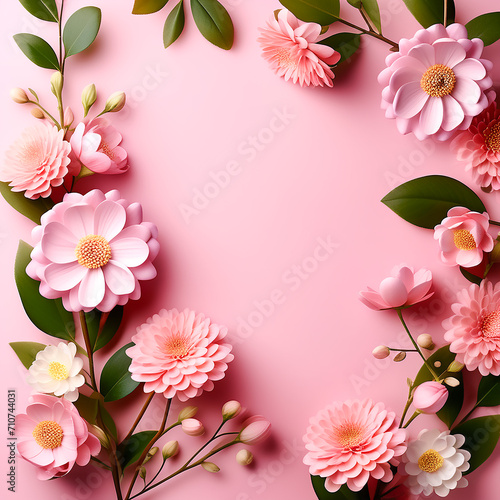 Flowers on a light pink background banner Template for wedding moms' day or woman's day greeting cards Generative AI image