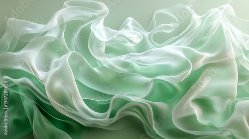 fabric, green, white, texture, wave, soft, elegant, minimalistic, flow, serene, transparency, gentle, design, fashion, material, drape, light, softness, textile, beauty, colours, modern, layer, style, home, decor, visual, aesthetic, simplicity, creativity, art, flowing, surface, sewing, smooth, natural, scene, handcraft, dreamy, subtile, palette, organic, ambient, lightness, airy, composition, generative