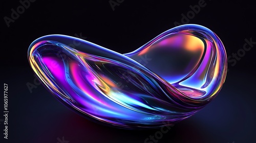 Flowing Metallic glass Waves in Neon Blue and Pink on Dark Background - Abstract Design Concept