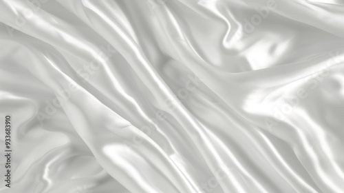 Flowing White Satin Fabric Background, Luxury Texture with Soft Elegant Drapes and Shiny Pattern