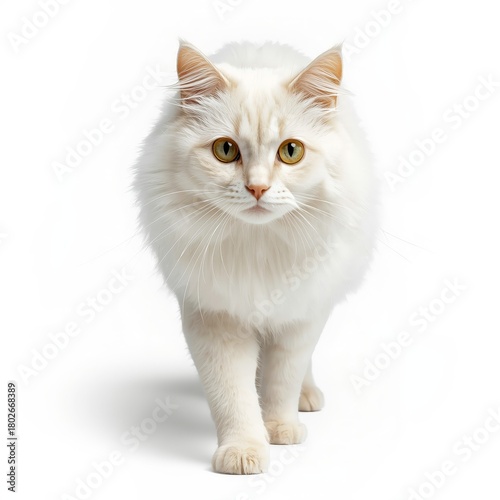Fluffy barn cat with bright green eyes exploring its surroundings during daylight hours