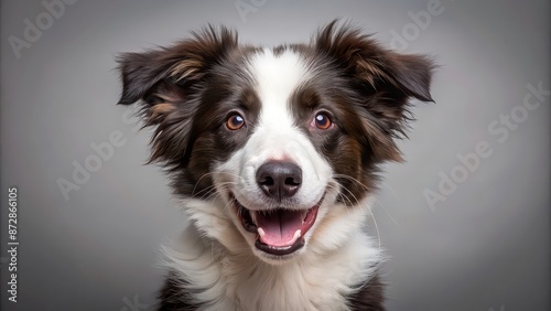 Fluffy border collie puppy with a big grin looking directly at the camera , isolated, adorable, fluffy, playful, pet, canine
