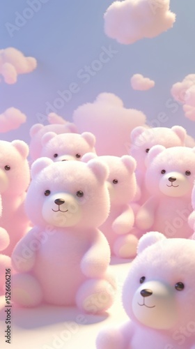 representation, illustration, stuffed toy, medication, money box, teddy bear, background, aesthetic, wallpaper, softness, cartoon, dreamy, fluffy, mammal, nature, pastel, cloud, colours, group, light, bear, cute, pill, pink, sky, toy, three-dimensional