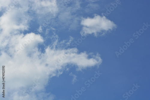 Fluffy stratocumulus clouds with clear blue sky background at Trat, Thailand. No focus.