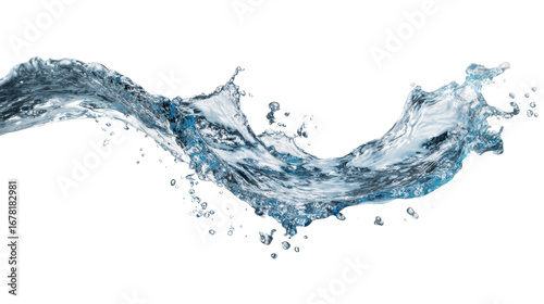 Fluid water splash isolated on white background, showcasing motion and clarity.