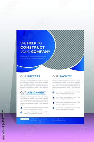 Flyer design template , A4 Size in vector Shapes Used. Corporate business flyer design and marketing agency brochure cover Unique,Modern and Stylish template with photo Free Vector.