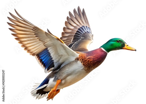 Flying duck isolated on white background