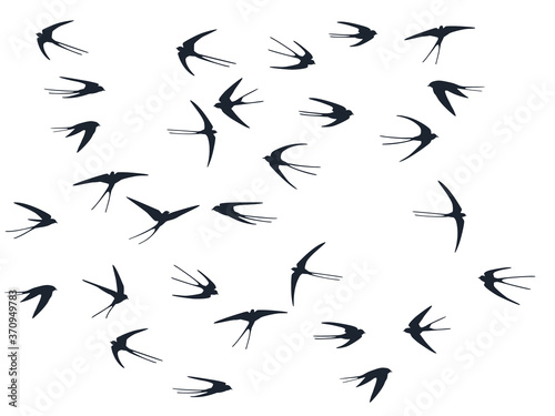 Flying martlet birds silhouettes vector illustration. Migratory martlets swarm isolated on white.