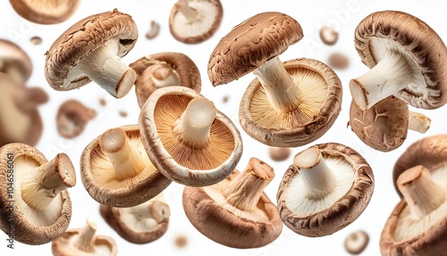 flying mushrooms isolated on white background