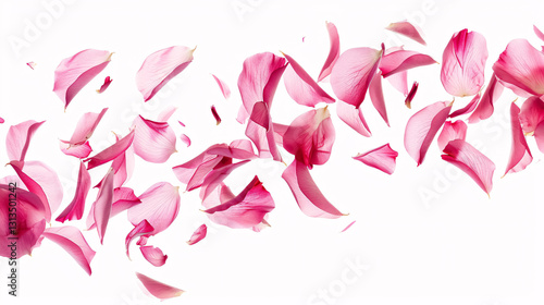 Flying pink petals isolated on a transparent background, cutout for versatile use.