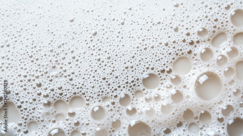 Foamy texture with bubbles showcasing a creamy liquid in a close-up view captured in bright lighting