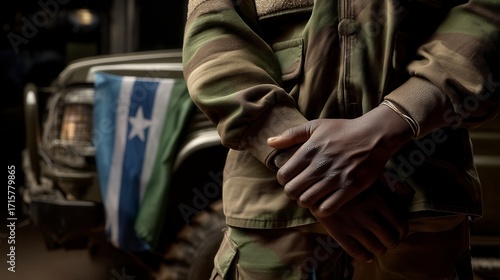 soldier, military, man, adult, uniform, hand, standing, vehicle, defense, security, service, army, professional, focused, serious, duty, protection, camouflage, green, brown, equipment, transport, background, patriotic, strength, discipline, honour, commitment, training, mission, tactical, force, personnel, armed, force, ready, prepared, alert, guardian, defender, brave, courageous, advertising, marketing, banner