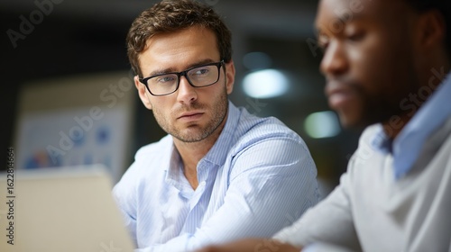 collaboration, concentration, sharpened, teamwork, discussion, business meeting, cooperation, laptop, businessman, attentive, colleague, working, partnership, studying, work, business, colleague, office, project, meeting, corporate, technology, professional, analysis, strategic, planning, detail, light, serious, formal, information, communication, digital, sharing, together, agreements, problem solving, development, innovation