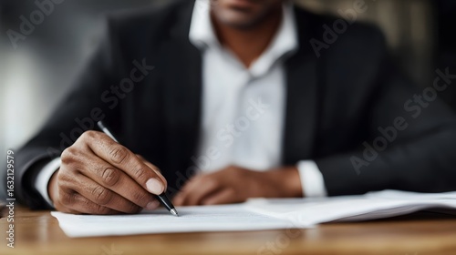 business, contract, legal, reviewing, paperwork, professional, desk, document, man, suit, reading, writing, sharpened, attention, decision, analysing, serious, concentrated, diligent, formal, corporate, office, workspace, monochrome, shadow, closeup, hand, pen, paper, form, agreements, negotiation, task, responsibility, occupation, career, expertise, precision, accuracy, commitment, dedication