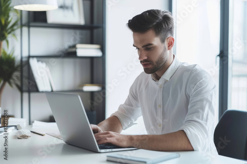 entrepreneur, male, laptop, office, working, focused, business, professional, modern, photogenic, workspace, technology, work, diligent, success, productivity, computer, cyberspace, white, desk, man, indoor, entrepreneurship, startup, young, employee, company, person, people, men at work, career, job, concentration, sharpened, boss, smart, formal, creative, corporate, tablet, keyboard, wireless, device, remote, project